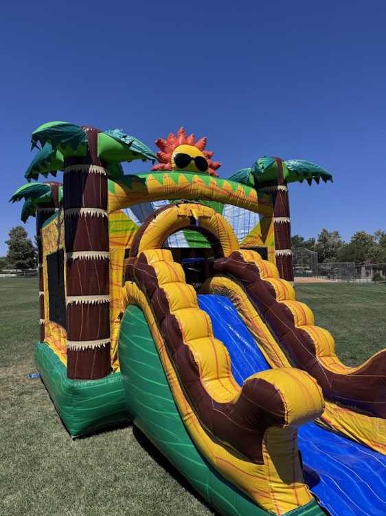 Take your event to the next level with our Sunrise Jungle Combo! This vibrant inflatable features a colorful marble-pattern design, spacious bounce area, climbing wall, built-in basketball hoop, and an exciting front-facing slide. Use it wet for a cool water slide adventure on hot days or dry for year-round fun. Perfect for birthday parties, school events, church festivals, and community celebrations, this combo unit delivers hours of active entertainment for kids of all ages. Built from durable, commercial-grade materials and cleaned and sanitized before every rental.