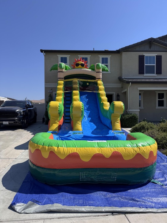 Add a burst of fun and color to your next event with the 14.5 FT Sunrise Slide! Featuring a bright, sunrise-inspired design, this inflatable slide can be used wet or dry, making it perfect for birthdays, school events, church gatherings, or backyard celebrations.